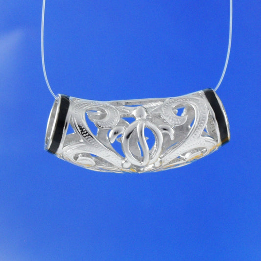 Hawaiian Heirloom Sea Turtle Maile Leaf Barrel Pendant, Sterling Silver Turtle Petroglyph Pendant, Christmas Anniversary Mom Birthday Gift