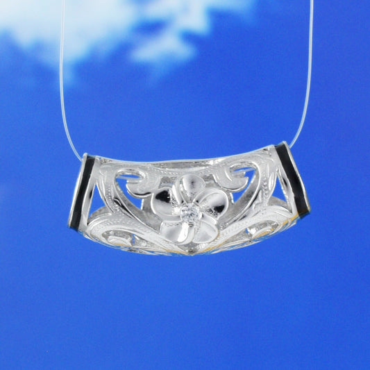 Hawaiian Heirloom Plumeria Maile Leaf Barrel Pendant, Sterling Silver Plumeria CZ Pendant, Christmas Anniversary Birthday Mom Gift