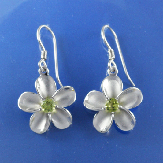 Hawaiian Genuine Peridot Plumeria Earrings, Sterling Silver Plumeria Peridot Dangle Earrings, Christmas Anniversary Birthday Gift