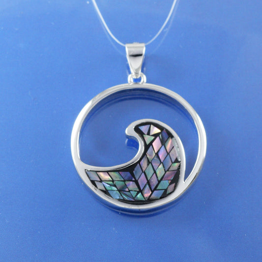 Hawaiian Genuine Paua Shell Ocean Wave Pendant, Sterling Silver Abalone MOP Wave Pendant, Christmas Anniversary Birthday Mom Gift