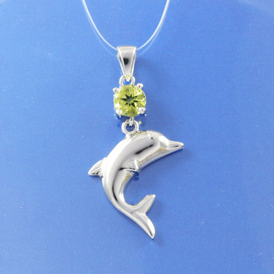 Hawaiian Genuine Peridot Dolphin Pendant, Sterling Silver Peridot Dolphin Pendant, Christmas Present, Birthday Mom Gift