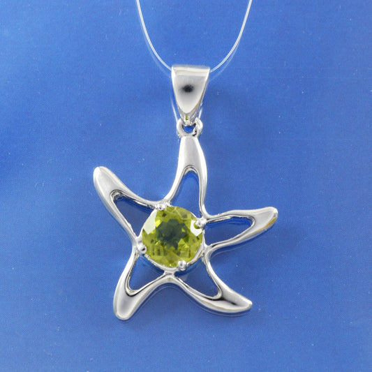 Hawaiian Genuine Peridot Starfish Pendant, Sterling Silver Green Peridot Starfish Pendant, Christmas Mom Birthday Gift
