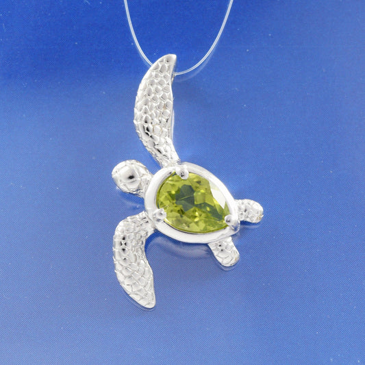 Hawaiian Genuine Peridot Sea Turtle Pendant, Sterling Silver Peridot Sea Turtle Pendant, Christmas Mom Birthday Gift