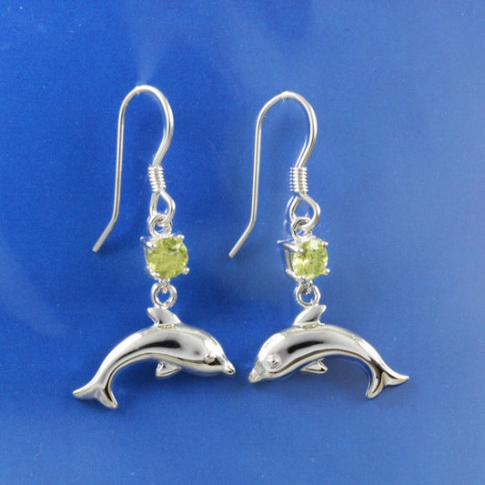 Hawaiian Genuine Peridot Dolphin Earrings, Sterling Silver Green Peridot Dolphin Dangle Earrings, Christmas Mom Birthday Gift