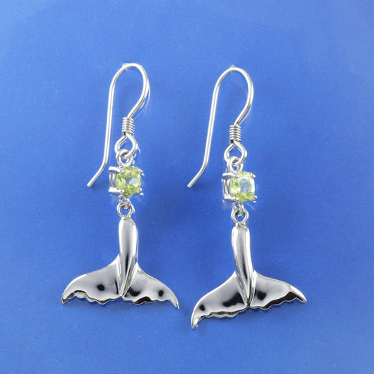 Hawaiian Genuine Peridot Dolphin Tail Earrings, Sterling Silver Green Peridot Dolphin Tail Dangle Earrings, Christmas Mom Birthday Gift