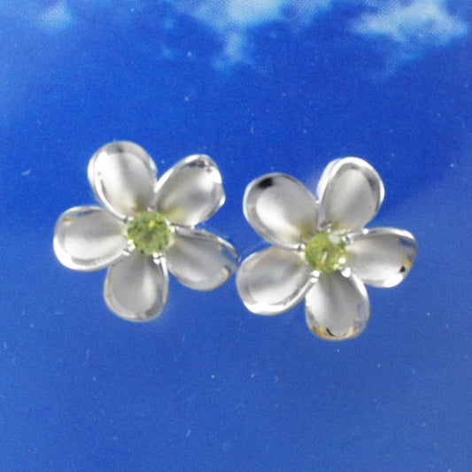 Hawaiian Genuine Peridot Plumeria Earrings, Sterling Silver Plumeria Peridot Stud Earrings, Christmas Anniversary Birthday Gift