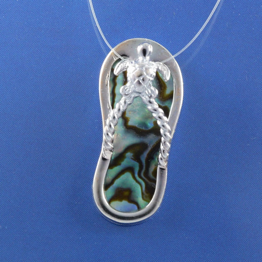 Hawaiian Genuine Paua Shell Sea Turtle Slipper Pendant, Sterling Silver Turtle Sandal Charm Pendant, Christmas Birthday Mom Gift