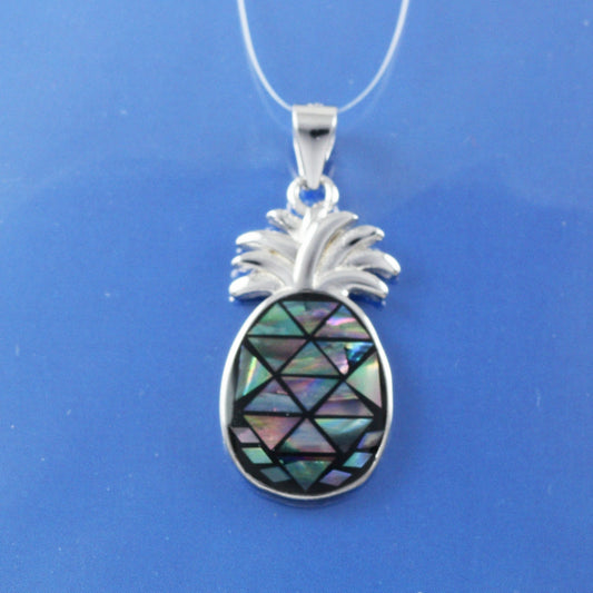 Hawaiian Genuine Paua Shell Pineapple Pendant, Sterling Silver Pineapple Charm Pendant, Christmas Anniversary Birthday Gift