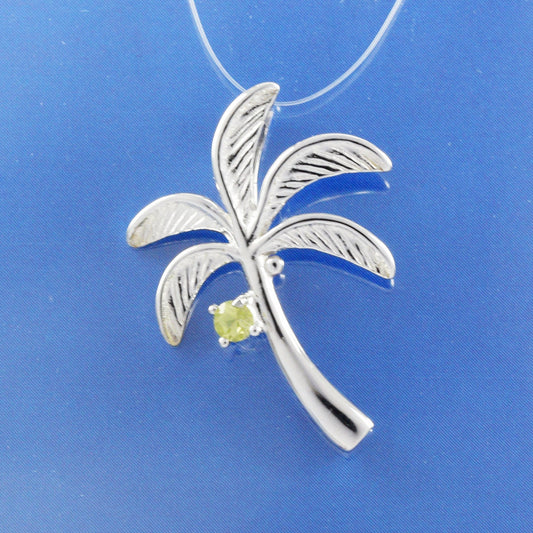 Hawaiian Genuine Peridot Palm Tree Pendant, Sterling Silver Green Peridot Palm Tree Pendant, Christmas Present, Birthday Mom Gift