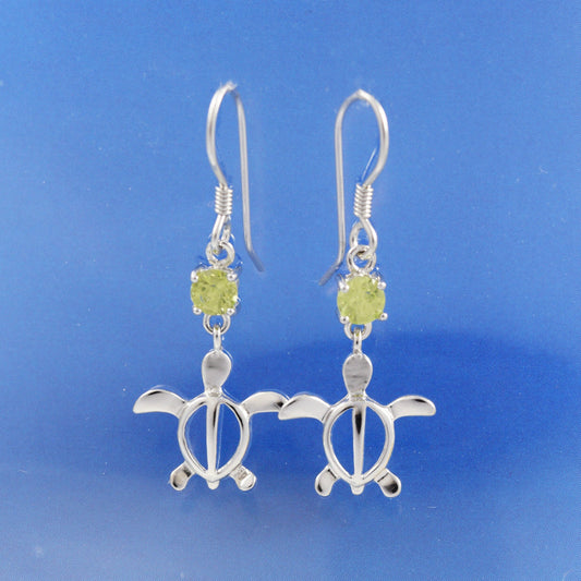 Hawaiian Genuine Peridot Sea Turtle Earrings, Sterling Silver Green Peridot Sea Turtle Dangle Earrings, Christmas Present Birthday Gift