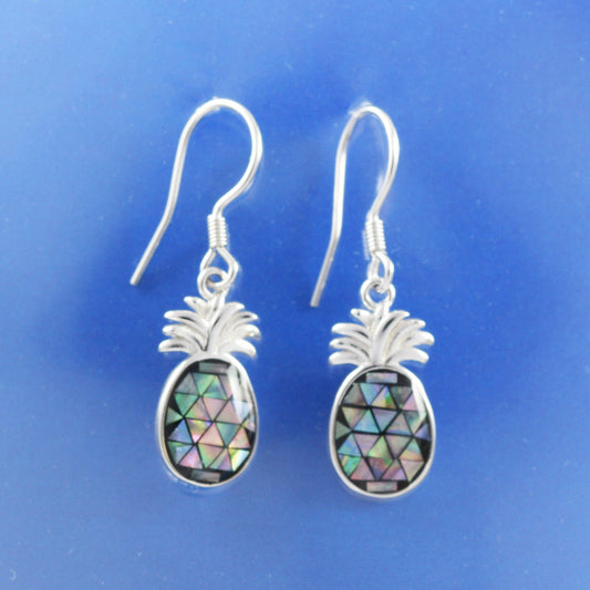 Hawaiian Genuine Paua Shell Pineapple Earrings, Sterling Silver Abalone MOP Pineapple Dangle Earrings, Christmas Anniversary Birthday Gift