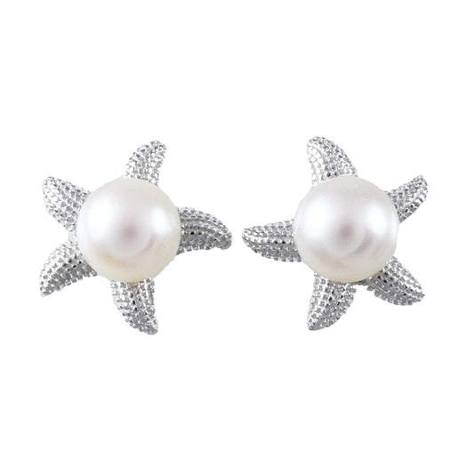 Hawaiian Genuine White Pearl Starfish Earrings, Sterling Silver White Pearl Starfish Stud Post Earrings, Hawaiian Birthday Mother Mom Gift