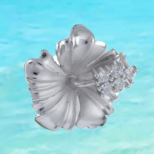 Hawaiian Hibiscus Pendant, Sterling Silver Hibiscus CZ Pendant, Hawaiian Jewelry, Christmas Present, Anniversary Birthday Gift