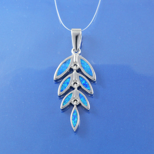 Hawaiian Blue Opal Maile Leaf Pendant, Sterling Silver Blue Opal Maile Leaf Pendant, Christmas Anniversary Birthday Mom Gift