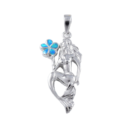 Hawaiian Blue Opal Plumeria Mermaid Pendant, Sterling Silver Mermaid Pendant, Hawaiian Jewelry, Christmas Anniversary Mom Birthday Gift