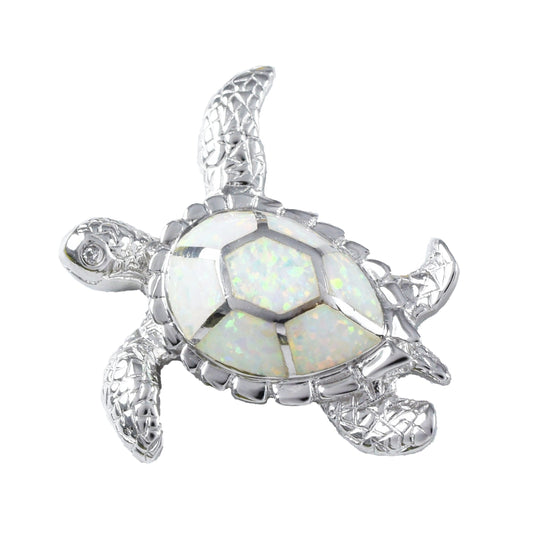 Hawaiian X-Large White Opal Sea Turtle Pendant, Sterling Silver White Opal Inlay Sea Turtle Pendant, Mother Christmas Birthday Gift