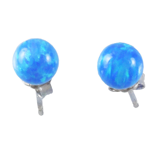 Hawaiian Blue Opal Round Ball Earrings, Sterling Silver Blue Opal Round Ball Stud Earrings, Christmas Present Birthday Gift
