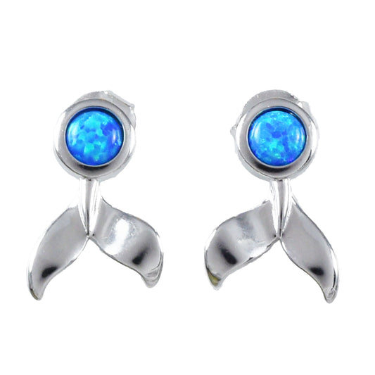 Hawaiian Blue Opal Dolphin Tail Earrings, Sterling Silver Blue Opal Dolphin Tail Stud Earrings, Hawaiian Christmas Mom Birthday Gift