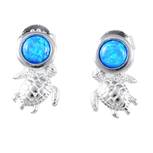 Hawaiian Blue Opal Sea Turtle Earrings, Sterling Silver Blue Opal Inlay Sea Turtle Stud Post Earrings, Hawaiian Jewelry, Birthday Mom Gift