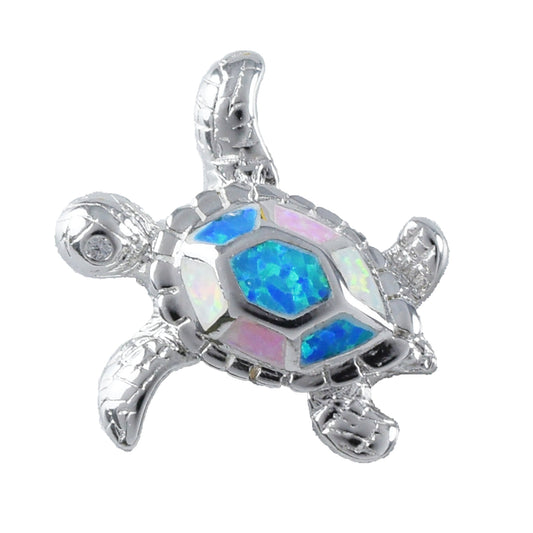 Hawaiian Blue Pink White Opal Sea Turtle Pendant, Sterling Silver Opal Sea Turtle Pendant, Christmas Birthday Mom Gift