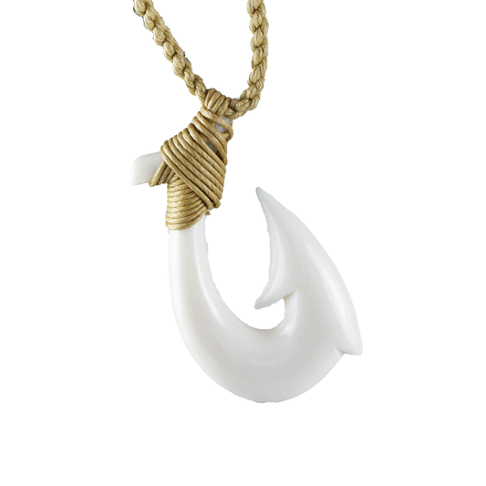 Hawaiian Large Fish Hook Necklace, Hand Carved Buffalo Bone 3D Fish Hook Necklace, N9103 - Paradise Treasures Jewelry