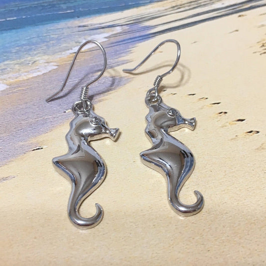 Hawaiian Large Seahorse Earrings, Sterling Silver Sea Horse Dangle Earrings, W4155 Birthday Wife Mom Mother Gift
