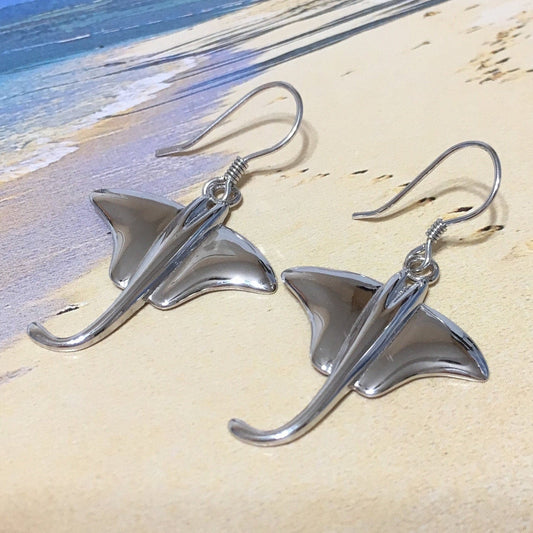 Hawaiian X-Large Stingray Earrings, Sterling Silver Sting Ray Dangle Earrings, W4153 Birthday Wife Mom Mother Gift, Island Jewelry