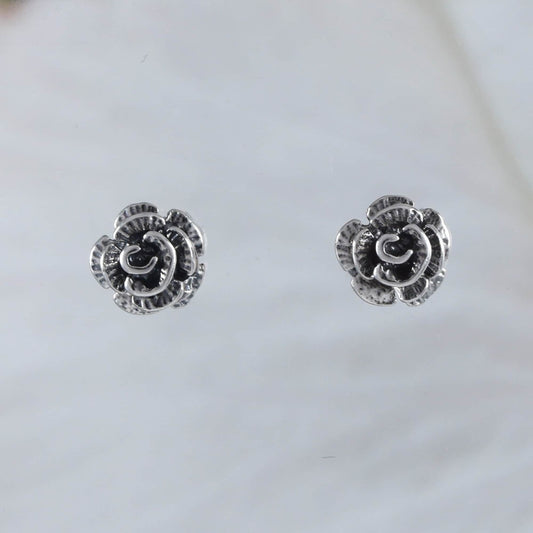 Silver Rose Earrings, Sterling Silver Rose Flower Stud Earrings, E8825 Birthday Mother Gift, Texan Jewelry