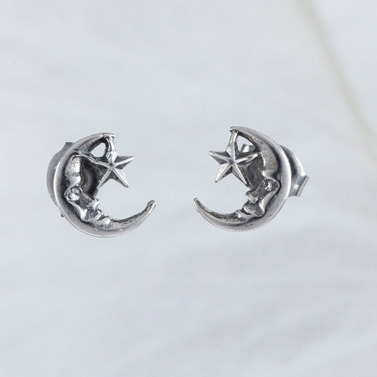 Silver Moon Star Earrings, Sterling Silver Moon Star Stud Earrings, E8828 Birthday Mother Gift, Texan Jewelry