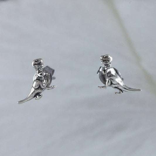 Silver Dinosaur Earrings, Sterling Silver Dinosaur Stud Earrings, E9065 Birthday Mother Gift, Texan Jewelry