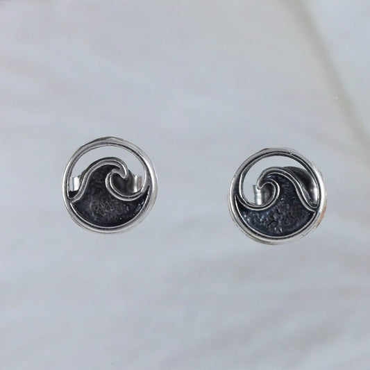 Silver Ocean Wave Earrings, Sterling Silver Ocean Wave Stud Earrings, E8817 Birthday Mother Wife Mom Gift, Texan Jewelry