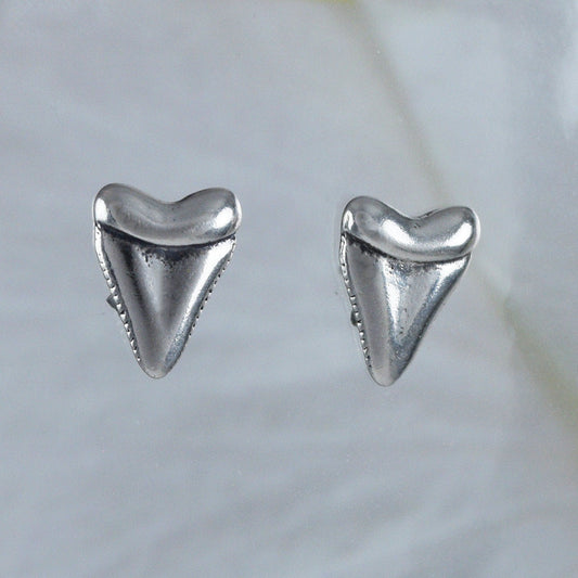 Silver Shark Teeth Earrings, Sterling Silver Shark Teeth Stud Earrings, E8313 Mother Birthday Mom Gift, Texan Jewelry