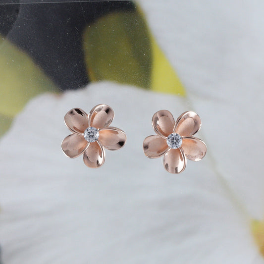 Hawaiian Plumeria Earring, Sterling Silver Rose-Gold Plated Plumeria Flower Stud Earring, E8893 Birthday Wife Mom Valentine Gift