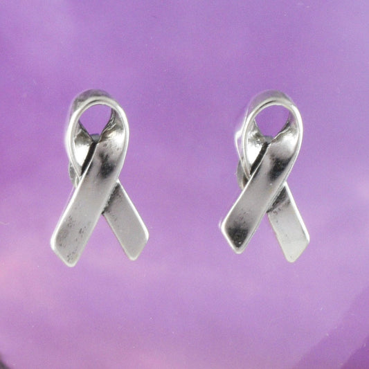 Silver Ribbon Earrings, Sterling Silver Ribbon Stud Earrings, Breast Cancer Awareness Sign, E8832 Birthday Mother Gift, Texan Jewelry