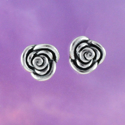 Silver Rose Earrings, Sterling Silver Rose Flower Stud Earrings, E8829 Birthday Mom Mother Gift, Texan Jewelry