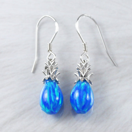 Hawaiian Blue Opal 3D Pineapple Earrings, Sterling Silver Pineapple Dangle Earrings, E9336 Birthday Mom Mother Gift