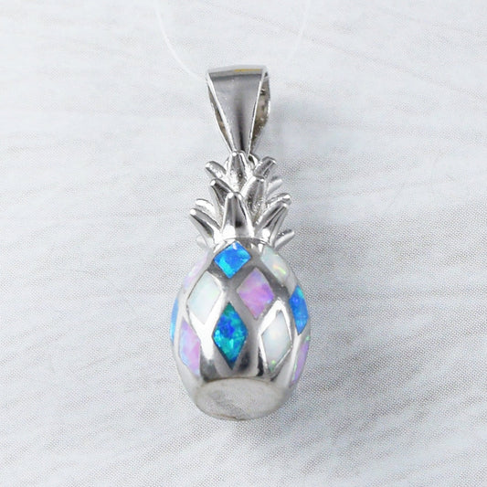 Hawaiian 3D Tri-color Opal Pineapple Pendant, Sterling Silver Blue White Pink Opal Pineapple Pendant, N9309 Birthday Gift
