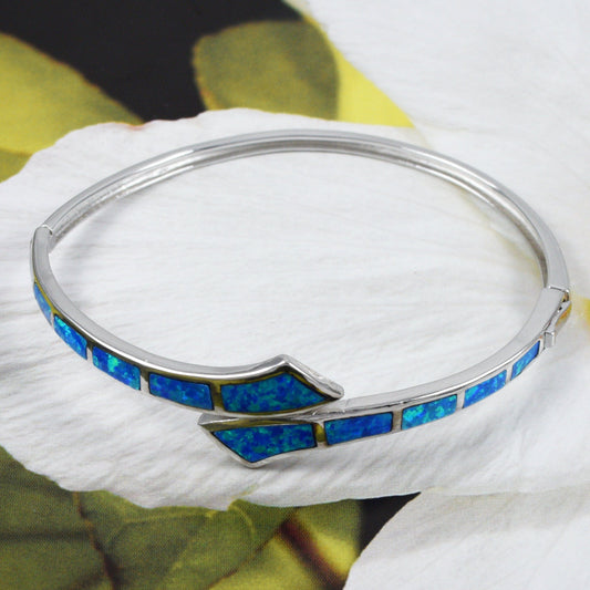 Hawaiian Blue Opal Ocean Wave Bangle Bracelet, Sterling Silver Blue Opal Wave Bracelet, B3344 Birthday Gift, Statement PC