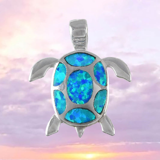 Hawaiian Blue Opal Sea Turtle Pendant, Sterling Silver Opal Turtle Pendant, N6028 Birthday Mother Mom Gift, Island Jewelry