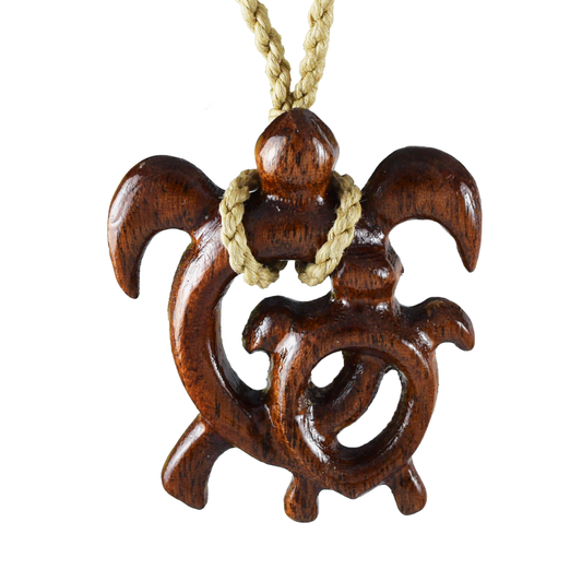 Hawaiian Large Mom & Small Sea Turtle Necklace, Hand Carved Genuine Koa Wood Turtle Necklace, N9136 -Paradise Treasures Jewelry
