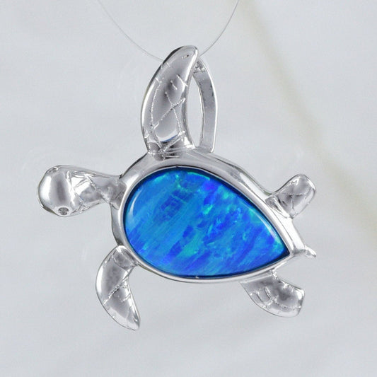 Hawaiian Blue Opal Sea Turtle Pendant, Sterling Silver Blue Opal Turtle Pendant, N8373 Birthday Mom Mother Gift, Statement PC