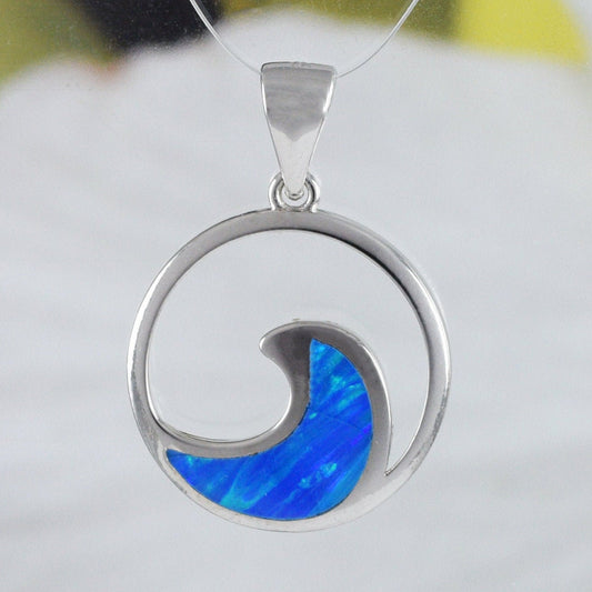 Hawaiian Blue Opal Ocean Wave Pendant, Sterling Silver Blue Opal Wave Pendant, N8383 Birthday Mom Mother Gift, Island Jewelry