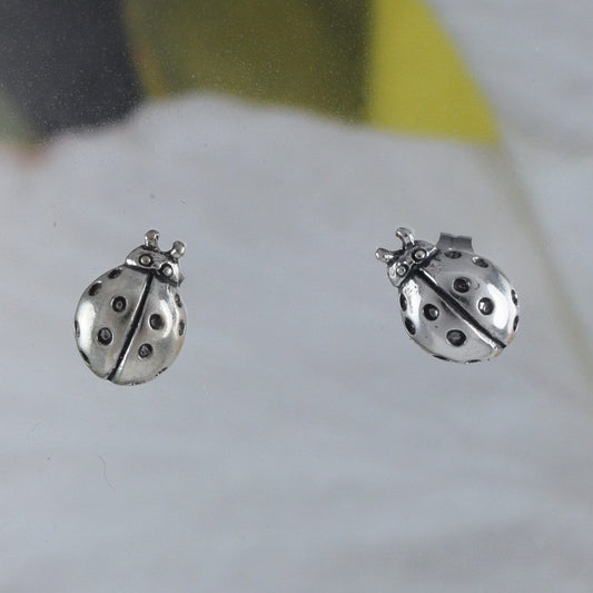 Silver Ladybug Earrings, Sterling Silver Lady Bug Stud Earrings, E8152 Birthday Mother Gift, Texan Jewelry