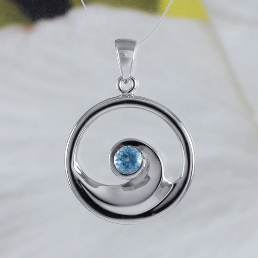 Hawaiian Genuine Blue Topaz Ocean Wave Pendant, Sterling Silver Blue Topaz Ocean Wave Pendant, N8887 Birthday Valentine Mom Gift