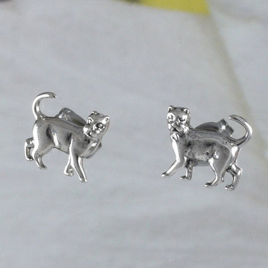 Silver Cat Earrings, Sterling Silver Kitten Cat Stud Earrings, E8667 Birthday Mom Wife Mother Gift, Texan Jewelry