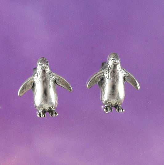 Silver Penguin Earrings, Sterling Silver Penguin Stud Earrings, E8062 Birthday Mother Gift, Texan Jewelry