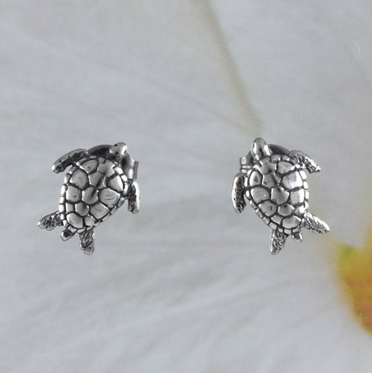 Silver Sea Turtle Earrings, Sterling Silver Turtle Stud Earrings, E8666 Birthday Wife Mom Mother Gift, Texan Jewelry