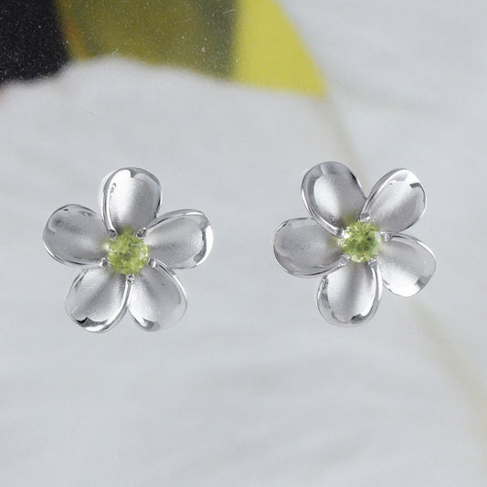 Hawaiian Genuine Peridot Plumeria Earring, Sterling Silver Peridot Plumeria Flower Stud Earring, E8889 Birthday Mom Mother Gift