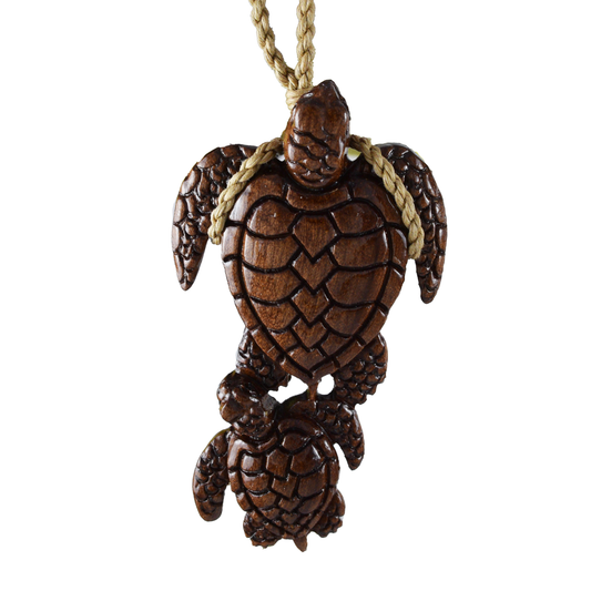 Hawaiian X-Large Mom & Small Sea Turtle Necklace, Hand Carved Genuine Koa Wood Turtle Necklace, N9110 - Paradise Treasures Jewelry