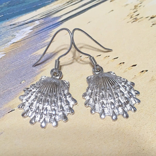 Hawaiian Large Seashell Earrings, Sterling Silver Sea Shell Dangle Earrings, W4143 Mother Birthday Mom Gift